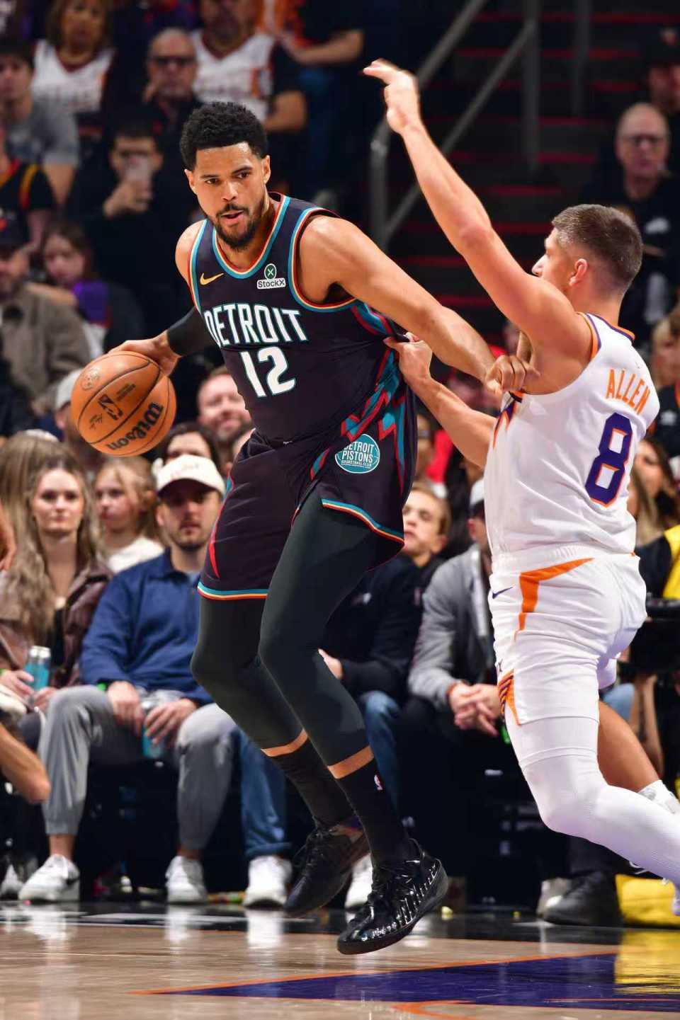 活塞过去两场连赢国王与掘金收获2连胜,太阳上一场主场106-102战胜篮网,本赛季首次交锋活塞主场108-105险胜太阳。本场太阳缺少布克与杰伦-格林,活塞缺少勒维尔。首节双方进攻火力均是极高,太阳前4分半钟19-17领先,之后缠斗至太阳29-28领先。太阳随后继续扩大领先优势,首节结束太阳35-31领先活塞,首节活塞25中14,其中三分7中1,杜伦6中6得到12+5与坎宁安8分4助攻;太阳27中13,其中三分13中6,阿伦12分与狄龙6中3得到9分。